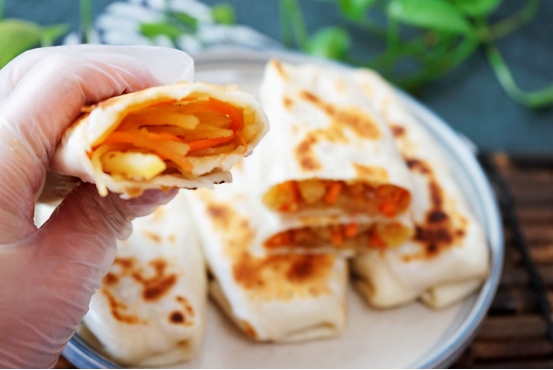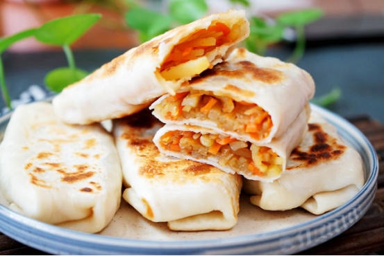 日常生活中经常会吃到一种面食就是卷饼,很多地方在立春的时候非常喜欢吃卷饼,这种卷饼是将菜卷在饼皮中,然后把饼的外皮烙熟。“生菜乍挑宜卷饼,罗幡旋剪称联钗”,这句诗词中说的就类似于这样的卷饼。这种卷饼里面卷的食材很丰富,最常见的是用土豆丝加上胡萝卜丝做成的馅。