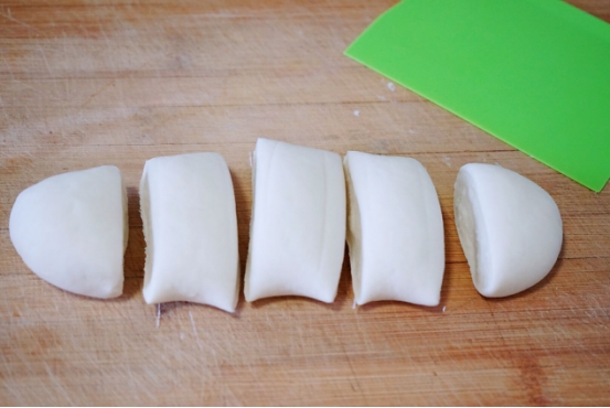 9、然后用工具把这个长面团切成几个重量差不多的面剂子,准备擀成面饼。