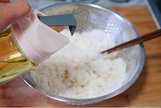 2、和面的时候少加一点油一起和面。